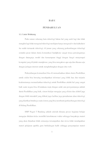 Aplikasi E-learning adalah wadah yang baik untuk memperbaiki sistem belajar mengajar yang ada di sekolah menengah pertama sistem e-learning bisa meningkatkan kreatifitas dan ke aktifan dalam sistem belajar siswa, e-learning sendiri menjadikan acuan untuk memperkenalkan teknologi juga Pendidikan yang lebih menarik ,ada beberapa hal yang menjadi latar belakang dalam pembuatan e-lerning ini yaitu, proses pelaksanaan ujian memerlukan biaya yang besar, perkembangan teknologi yang menyebabkan persaingan dalam mendapatkan informasi untuk perkembangan pendidikan. Tujuan utama peneliti adalah membangun sistem e-learning dan ujian online di SMP Negri 5 Bandung dalam sistem ini terdapat tugas online yang bisa di atur dalam waktu pengumpulannya dan materi online yang bisa di askses dimana dan kapan saja lalu ujian online yang memperkecil biaya saat pelaksanaan ujian.