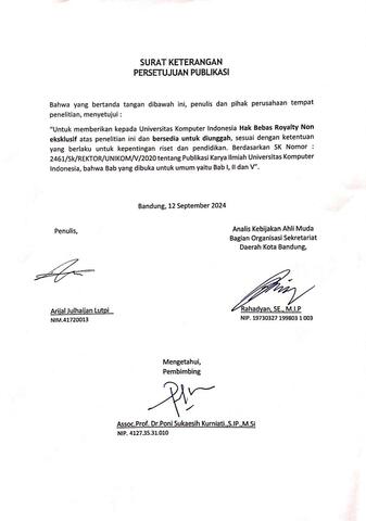 UNIKOM_ARIJAL JULHAIJAN LUTPI_SURAT KETERANGAN PERSETUJUAN PUBLIKASI.jpeg - Published Version