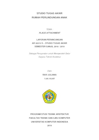 Juliana, Ravi (2019) Studio Tugas Akhir Tema Place Attachment. Other thesis, Universitas Komputer Indonesia.