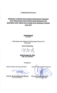 Destiana, Jessica (2019) Pengaruh Leverage dan Ukuran Perusahaan Terhadap Nilai Perusahaan Pada Perusahaan Makanan dan Minuman Yang Terdaftar Di Bursa Efek Indonesia Periode 2013-2017. Other thesis, Universitas Komputer Indonesia.