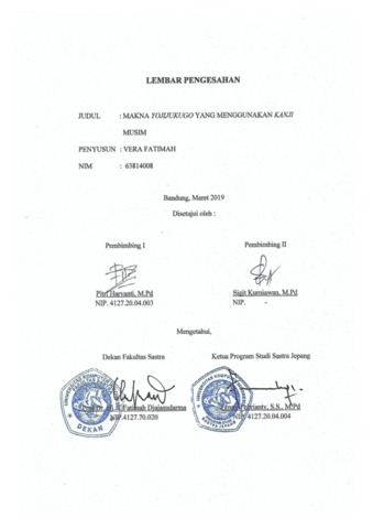 Fatimah, Vera (2019) Makna Yojijukugo Yang Menggunakan Kanji “Musim”. Other thesis, Universitas Komputer Indonesia.