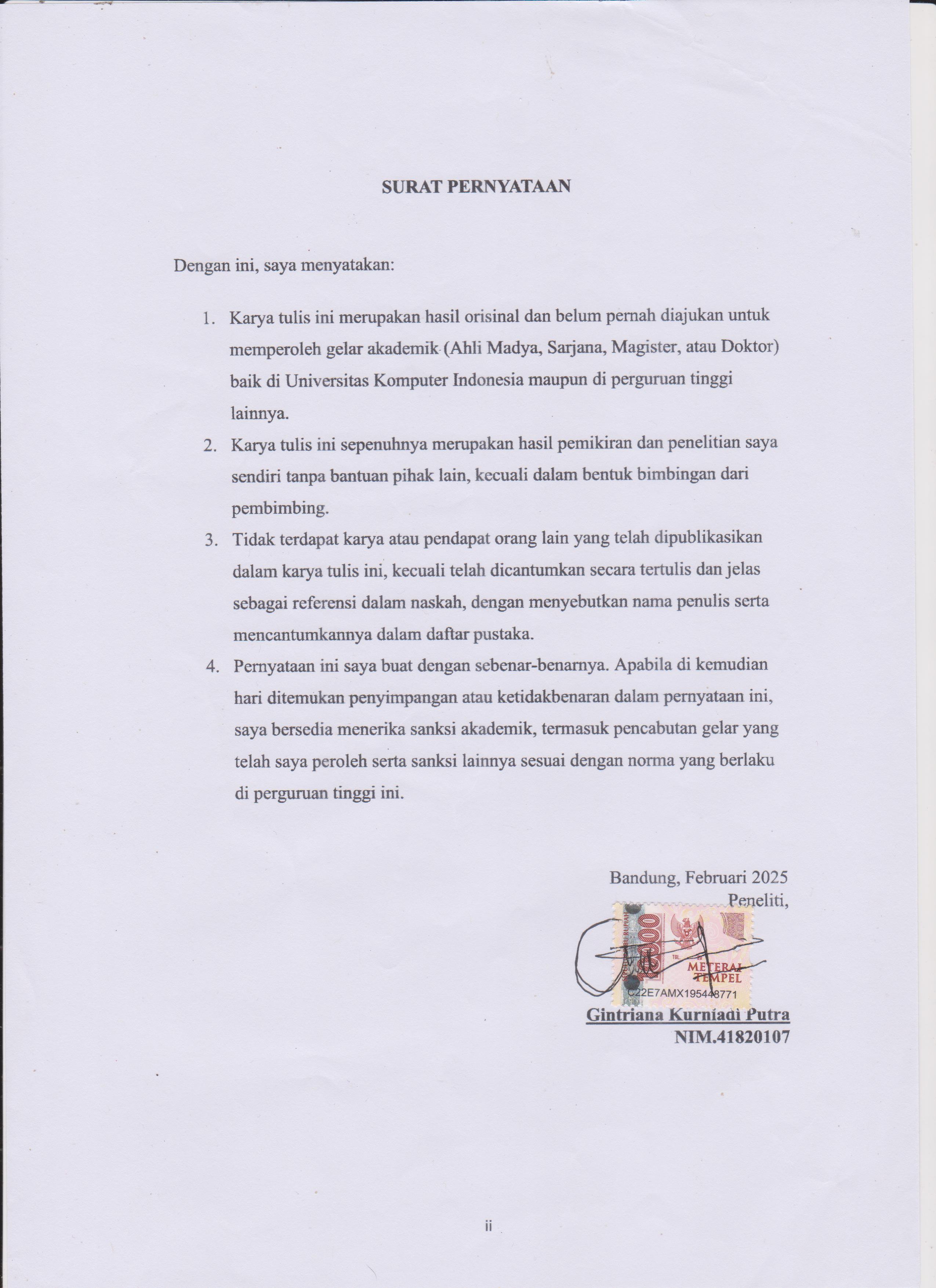 UNIKOM_Gintriana Kurniadi Putra_Lembar Keaslian Tidak Plagiat.jpg - Published Version Download (690kB) | Preview |