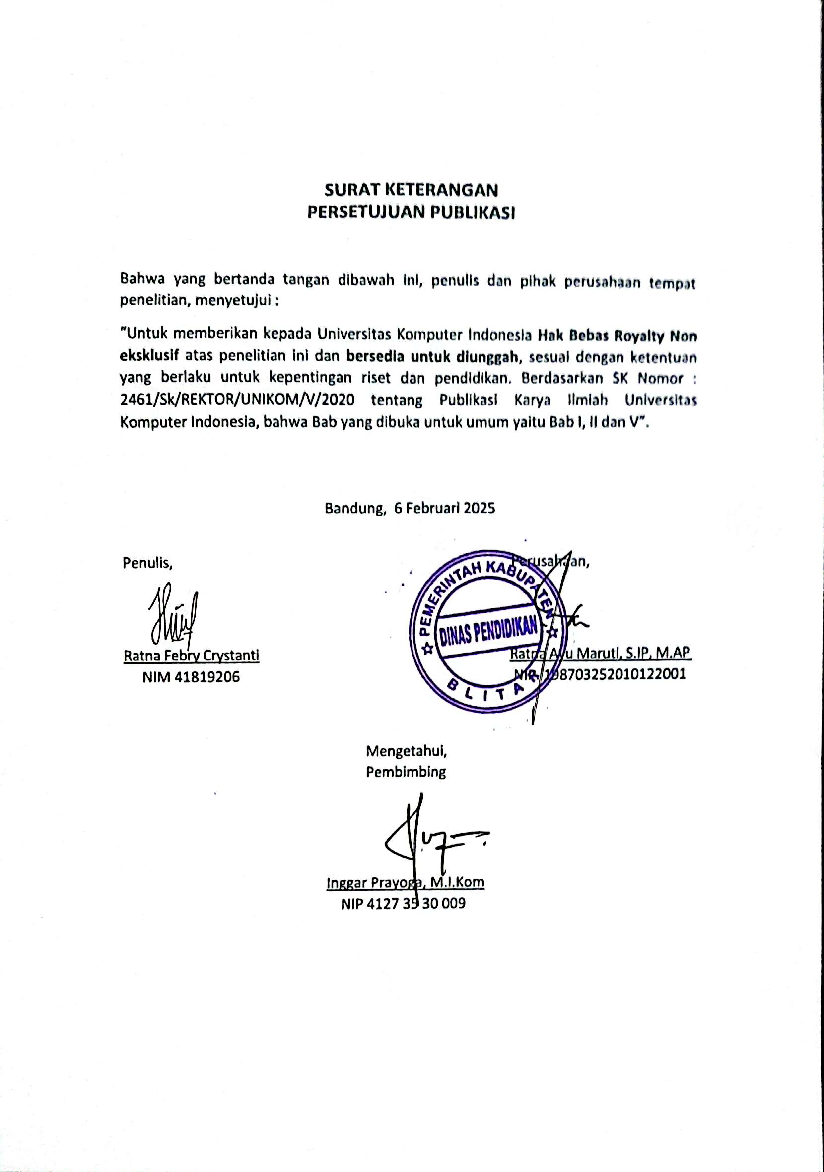Crystanti, Ratna Febry (2025) Gaya Komunikasi Pimpinan Bidang Tata Usaha Dinas Pendidikan Kabupaten Blitar Dalam Menumbuhkan Kinerja Pegawai. Other thesis, Universitas Komputer Indonesia.