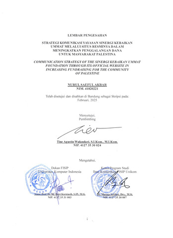 Akbar, Nurul Saeful (2025) Strategi Komunikasi Yayasan Sinergi Kebaikan Ummat Melalui Situs Resminya Dalam Meningkatkan Penggalangan Dana Untuk Masyarakat Palestina. Other thesis, Universitas Komputer Indonesia.