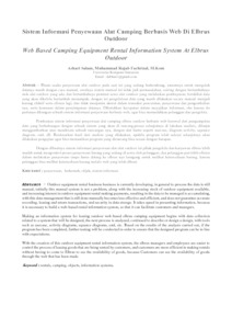 Usaha penyewaan alat outdoor yang saat ini sedang berkembang, namun secara umum pengelolaan datanya masih dilakukan secara manual. Pada awal nya sistem manual tersebut bukan jadi masalah, namun seiring dengan bertambah banyaknya jumlah alat outdoor yang dimiliki dan bertambahnya jumlah penyewa yang melakukan transaksi, mengakibatkan data data yang dikelola semakin besar, dengan demikian pengelolaan data dengan cara manual menjadi tidak efektif dan efisien lagi, sehingga untuk menjamin keakuratan dalam pencatatan transaksi penyewaan dan pengembalian serta keamanan dalam peyimpanan data. Dibutuhkan kecepatan dalam penyajian informasi,oleh karena itu perlu di bangun sebuah sistem informasi penyewaan alat outdoor berbasis web, agar bisa memudahkan pelanggan dan pengelola. Pembuatan sistem informasi penyewaan alat camping elbrus outdoor berbasis web ini diawali dengan pengumpulan data yang berkaitan dengan sistem yang akan di bangun, kemudian dilakukan analisis, dan dilanjutkan dengan mendesain sistem dengan metode objek, dengan alat bantu seperti usecase, diagram activity, squance diagram, uml, dll. Berdasarkan hasil dari analisis yang dilakukan, setelah program selesai kemudian akan dilakukan pengujian untuk memastikan bahwa program yang dibuat telah sesuai dengan yang diharapkan. Dengan dibuatnya sistem informasi penyewaan alat-alat outdoor ini pihak pengelola dan karyawan elbrus lebih mudah untuk mengontrol proses penyewaan barang yang sedang di sewa oleh pelanggan, dan pelanggan pun lebih efisien dalam melakukan penyewaan tanpa harus datang ke elbrus nya lasngung untuk melihat ketersediaan barang, karena pelanggan bisa melihat ketersediaan barang melalu web yang telah dibuat.
