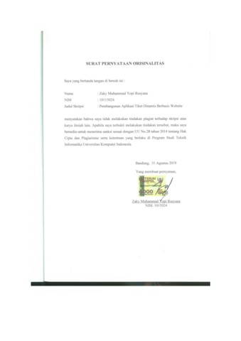 UNIKOM_ZAKY MUHAMMAD YOPI RUSYANA_SURAT KETERANGAN ORISINALITAS.pdf - Published Version
