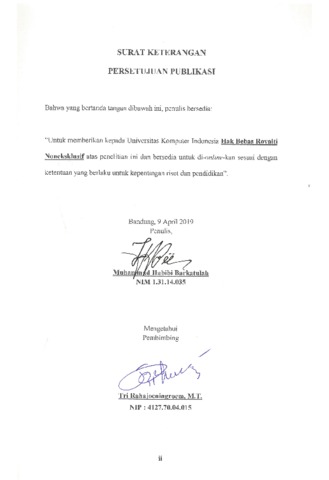UNIKOM_MUHAMMAD HABIBI BARKATULAH_SURAT KETERANGAN PERSETUJUAN PUBLIKASI.pdf - Published Version