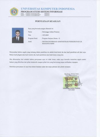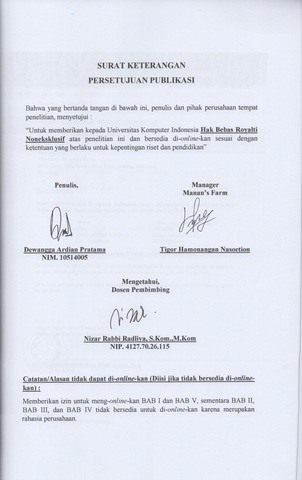 Pratama, Dewangga Ardian (2018) Sistem Informasi Administrasi Perkebunan Di Manan’s Farm. Other thesis, Universitas Komputer Indonesia.