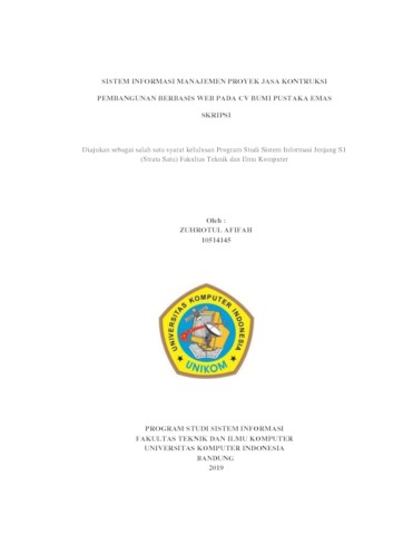 Afifah, Afifah (2019) Sistem Informasi Manajemen Proyek Jasa Konstruksi Pembangunan Berbasis Web pada CV Bumi Pustaka Emas. Other thesis, Universitas Komputer Indonesia.