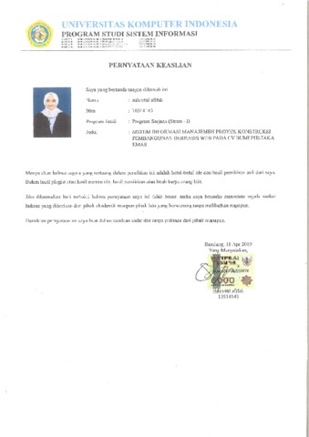 UNIKOM_ZUHROTUL AFIFAH_SURAT PERNYATAAN KEASLIAN.pdf - Published Version
