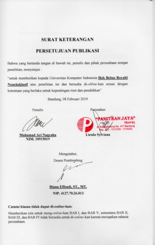 Nugraha, Muhamad Ari (2019) Sistem Informasi Pemesanan Tiket Travel Pada Pamitrans Jaya Travel. Diploma thesis, Universitas Komputer Indonesia.