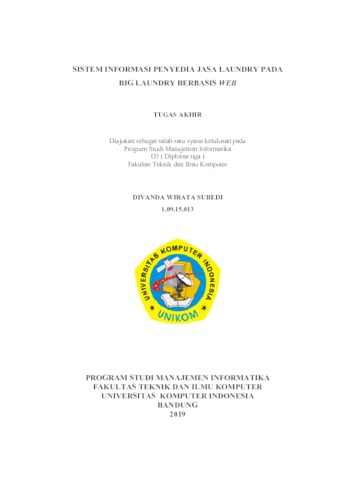 Subedi, Divanda Wirata (2019) Sistem Informasi Penyedia Jasa Laundry Pada BIG LAUNDRY Berbasis Web. Diploma thesis, Universitas Komputer Indonesia.