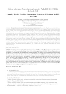 Menganalisa sebuah usaha di bidang jasa laundry yang bernama Big Laundry . Big Laundry adalah salah satu usaha penyedia jasa cuci kiloan yang beralamat di Kp. Kihapit Timur rt.09 rw.08 Lewigajah Cimahi Selatan. Namun Saat ini Big Laundry dalam proses pencatatan data seperti transaksi, laporan transaksi, stok bahan baku, pengambilan bahan baku, dan penerimaan cucian dilakukan secara manual sehingga dapat terjadi kesalahan seperti kehilangan data, tidak terkontrolnya data dan ketidaksamaan data yang di akibatkan oleh proses pencatatan data yang masih manual sehingga membutuhkan waktu yang lama untuk mencari data, mengelola data – data yang telah di catat, dan sering terjadinya ketidaksamaan data dalam membuat laporan. Untuk pengambilan pakaian yang telah selesai di laudry maka pemilik pakaian tersebut akan kembali datang sesuai dengan tanggal yang telah tertera pada nota yang telah diberikan tempo hari. Permasalahan di BIG LAUNDRY adalah Nota yang ada masih belum tersusun secara rapih. Menyebabkan pegawai kesulitan dalam mencari cucian yang sudah beres saat pengambilan oleh konsumen dan pada saat membuat laporan harian maupun bulanan pihak kasir merasa kewalahan karena harus merekap ulang nota-nota transaksi yang ada. Hal ini membuat penulis ingin merekomendasikan untuk sedikit membantu dan mengurangi tingkat kesulitan dalam hal mengelola transaksi masuk dan selesainya pakaian di Big Laundry, serta ingin membantu pengolahan data secara terkomputerisasi