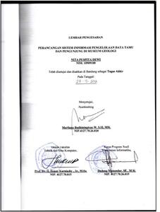 Museum Geologi adalah museum yang memiliki ratusan ribu koleksi batuan dan mineral, serta puluhan ribu koleksi fosil. Selain itu, Museum Geologi juga dilengkapi dengan sarana laboratorium geologi dan tempat penyimpanan peragaan hasil survei geologi. Adapun masalah yang penulis temukan sewaktu melaksanakan penelitian di Museum Geologi tersebut adalah masih digunakannya pencatatan data di buku besar dalam mengelola data tamu maupun pengunjung. Tentu saja hal tersebut mengakibatkan terjadinya ketidakakuratan dan keterlambatan dalam proses pembuatan laporan data tamu dan pengunjung Berdasarkan latar belakang tersebut, maka penulis melakukan penelitian ini untuk merancang sistem informasi pengelolaan data tamu dan pengunjung di Museum Geologi. Adapun metode penelitian yang penulis gunakan adalah metode penelitian kualitatif dan metode pengembangan sistemnya adalah menggunakan metode prototype serta untuk pemodelan sistemnya menggunakan Unified Modelling Language (UML). Selain itu, perangkat lunak yang penulis gunakan dalam pembuatan sistem pengelolaan data tamu dan pengunjung di Museum Geologi ini adalah Netbeans 7.0. dan basis datanya menggunakan MySQL. Dengan adanya sistem informasi pengelolaan data tamu dan pengunjung ini diharapkan dapat membantu dalam pengelolaan data tamu dan pengunjung yang makin meningkat tiap tahunnya, serta laporan yang dihasilkan pun bisa lebih akurat, efektif dan efisien.