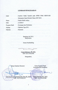 Nadzir Mufti Auliya NIM. 21509037 (2013) Analisis Gadai Syariah Pada BPRS PNM Mentari Kabupaten Garut Periode 2007-2011.