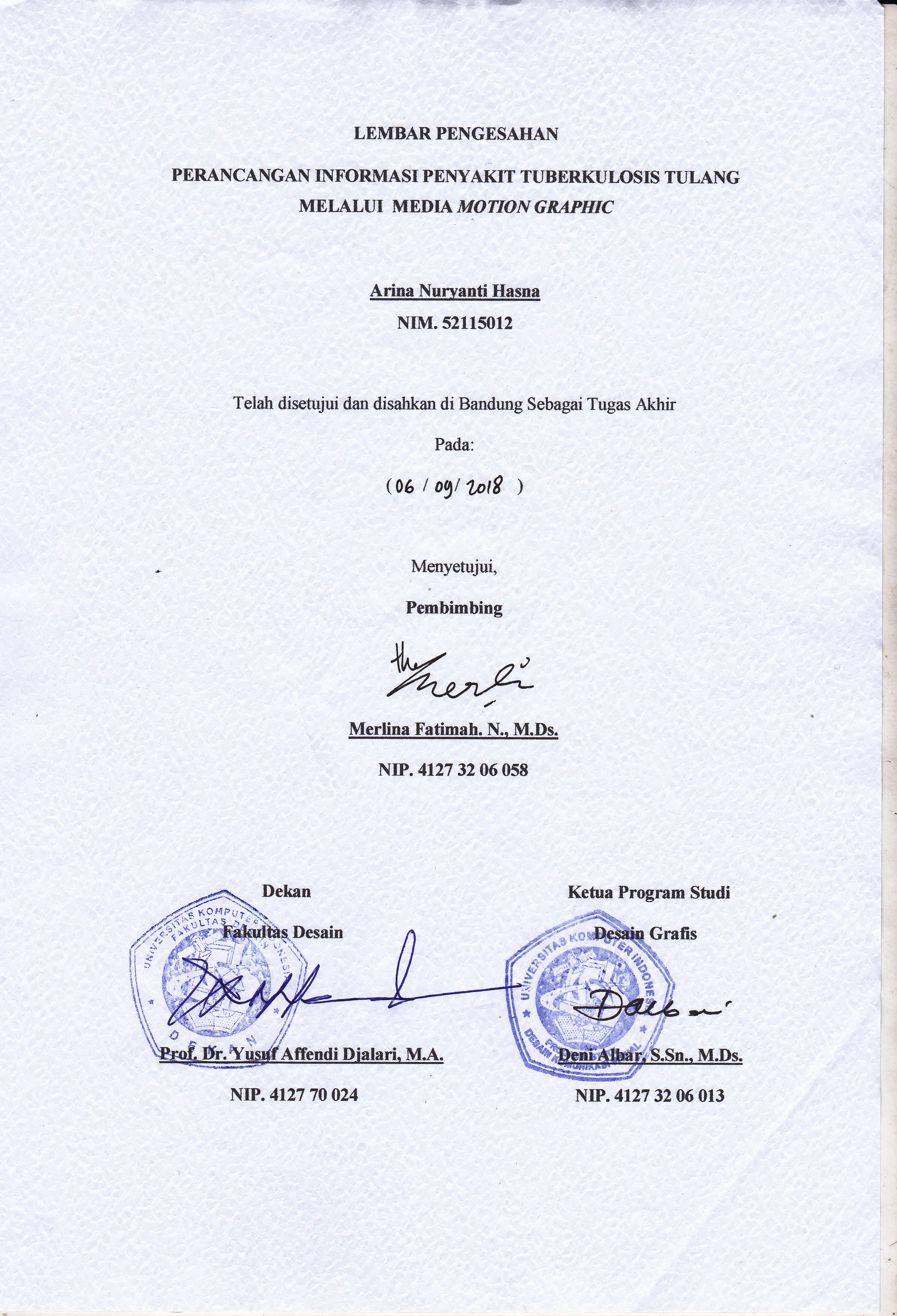Arina Nuryanti Hasna NIM. 52115012 (2018) Perancangan Media Informasi Penyakit Tuberkulosis Tulang Melalui Media Motion Graphic.