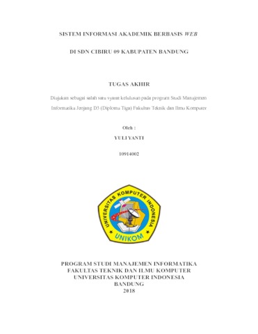 Yanti, Yuli (2018) Sistem Informasi Akademik Berbasis Web Di SDN Cibiru 09 Kabupaten Bandung. Other thesis, Universitas Komputer Indonesia.