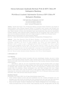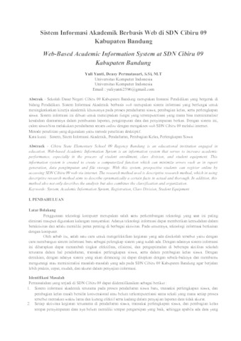 Sekolah Dasar Negeri Cibiru 09 Kabupaten Bandung merupakan Instansi Pendidikan yang bergerak di bidang Pendidikan. Sistem Informasi Akademik berbasis web merupakan sistem informasi yang berfungsi untuk meningkatkatkan kinerja akademik khususnya pada proses pendaftaran siswa, pembagian kelas, serta perlengkapan siswa. Sistem informasi ini dibuat untuk menciptakan fungsi yang teromputerisasi yang mana bisa meminimalisir kesalahan diantaranya dalam pembuatan laporan, pengimputan data dan penyimpanan berkas. Dengan sistem ini, calon siswa bisa melakukan pendaftaran secara online dengan mengakses web SDN Cibiru 09 melalui internet. Metode penelitian yang digunakan yaitu metode penelitian desktiptif.