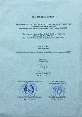 Lia Aliyah NIM. 21514017 (2017) Pengaruh Loan To Deposit Ratio (LDR) Terhadap Profitabilitas (ROA) Pada PT. Bank BJB Tbk.
