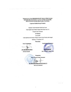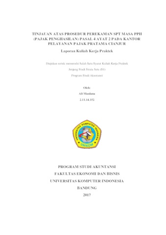Tinjauan Atas Prosedur Perekaman SPT Masa PPh (Pajak Penghasilan) Pasal 4 Ayat 2 Pada Kantor Pelayanan Pratama Cianjur Kerja praktek ini dilakukan di Kantor Pelayanan Pajak Pratama Cianjur. Tujuan dari kerja praktek ini adalah untuk mengetahui prosedur, hambatan dan upaya dalam Pelaporan Surat Pemberitahuan (SPT) Masa Pasal 4 Ayat 2 Pada Kantor Pelayanan Pajak Pratama Cianjur Metode yg digunakan dalam penyusunan laporan kerja prkatek ini adalah metode deskriptif. Metode ini dilakukan dengan cara memberikan gambaran terkait tujuan laporan kerja praktek. Kesimpulan dari Laporan kerja praktek ini menunjukkan bahwa Prosedur Pelaporan Surat Pemberitahuan (SPT) Masa Pasal 4 Ayat 2 Pada Kantor Pelayanan Pajak Pratama Cianjur telah dilaksanakan dengan baik. Namun demikian perlu adanya upaya lebih optimal lagi dalam meminimalisasi hambatan yg ada sehingga prosedur bisa berjalan dengan baik.