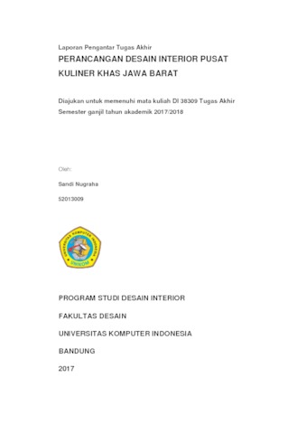 Nugraha, Sandi (2018) Perancangan Desain Interior Pusat Wisata Kuliner Khas Jawa Barat. Other thesis, Universitas Komputer Indonesia.