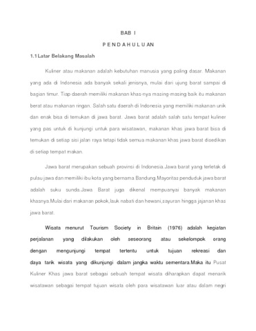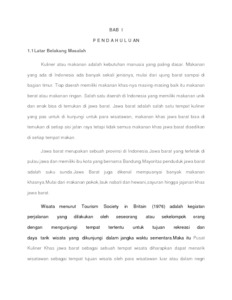 Indonesia merupakan sebuah negara kepulauan yang besar dengan beragam artefak kebudayaan yang dimilikinya,seperti upacara adat, senjata perang, pakaian tradisional, ragam kesenian, hingga kuliner. Kuliner jawa barat mulai dikenal oleh bangsa asing karena rasanya yang kaya dan penampilannya yang unik serta menarik, dan juga Indonesia mempunyai cara masak dan makan yang beraneka ragam. Bumbu yang digunakan juga beraneka ragam, dari setiap daerah memiliki bumbu yang khas dan menjadi identitas di wilayah tersebut. Masyarakat Indonesia sendiri tidak semua mengenal masakan asli Indonesia dari berbagai pulau, dan lebih cendrung mengkonsumsi makanan siap saji sebagai makanan kesehariannya Sebagai dampak perubahan zaman, masyarakat khususnya daerah perkotaan semakin menuntut mereka pula untuk bergerak lebih cepat, sehingga di perlukanadanya sebuah fasilitas seperti tempat wisata kuliner khusus masakan Indonesia yang lengkap untuk memberikan dan menambah pengetahuan tentang budaya Indonesia melalui kuliner
