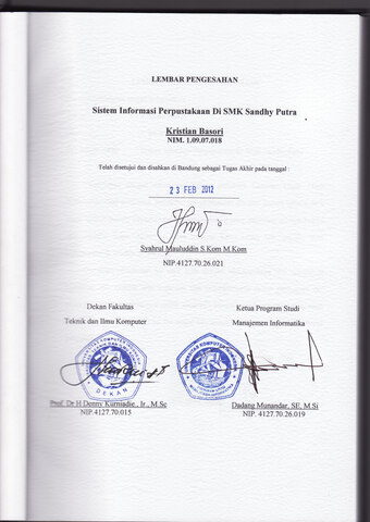 Kristian Basori NIM. 10907018 (2013) Sistem Informasi Perpustakaan Di SMK Sandhy Putra.