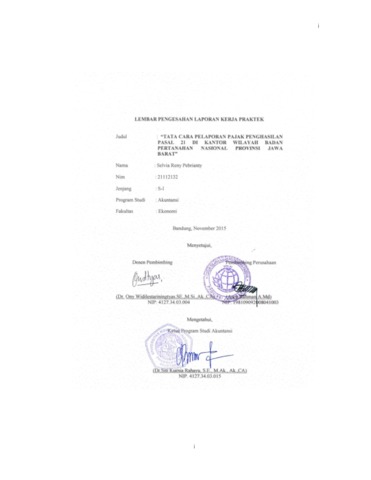 Pebrianty, Selvia Reny (2015) Tata Cara Pelaporan Pajak Penghasilan Pasal 21 Di Kantor Wilayah Badan Pertanahan Nasional Provinsi Jawa Barat. Other thesis, Universitas Komputer Indonesia.