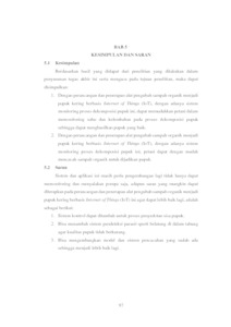 IoT (Internet of Things) merupakan suatu konsep yang bertujuan untuk memperluas manfaat dari konektivitas internet yang tersambung secara terus menerus. IoT (Internet of Things) bisa dimanfaatkan pada pertanian dan peternakan seperti memonitoring proses dekomposisi pupuk dan pengontrolan pompa air dari jarak jauh untuk penyiraman tanaman dan sebagainya melalui jaringan internet. Penelitian dilakukan dengan merancang dan menerapkan alat pengubah sampah organik menjadi pupuk kering berbasis internet of things (iot). Proses kendali dan monitoring dilakukan melalui web server Firebase yang dihubungkan dengan aplikasi android untuk proses monitoring dan kontrolnya. Terdapat 1 fitur kendali yaitu mematikan dan menyalakan pompa air untuk proses pemberian air pada pupuk maupun proses pemberian bioaktivator pada pupuk. Sedangkan data yang dapat dimonitoring adalah data suhu dan kelembaban dalam tabung, suhu pupuk, dan kelembaban pupuk. Uji coba dilakukan dengan cara melakukan pencacahan sampah hingga memonitoring proses dekomposisi pupuk dari hari pertama hingga pupuk matang dapat dilihat pada suhu pupuk yang sudah stabil. Awal pembuatan pupuk akan berada pada suhu optimal diatas 50 derajat celcius dan berangsur turun hingga pada titik matang dan suhu stabil. Hasil uji coba yang dilakukan terhadap semua fitur menunjukan hasil sesuai harapan dan tujuan.