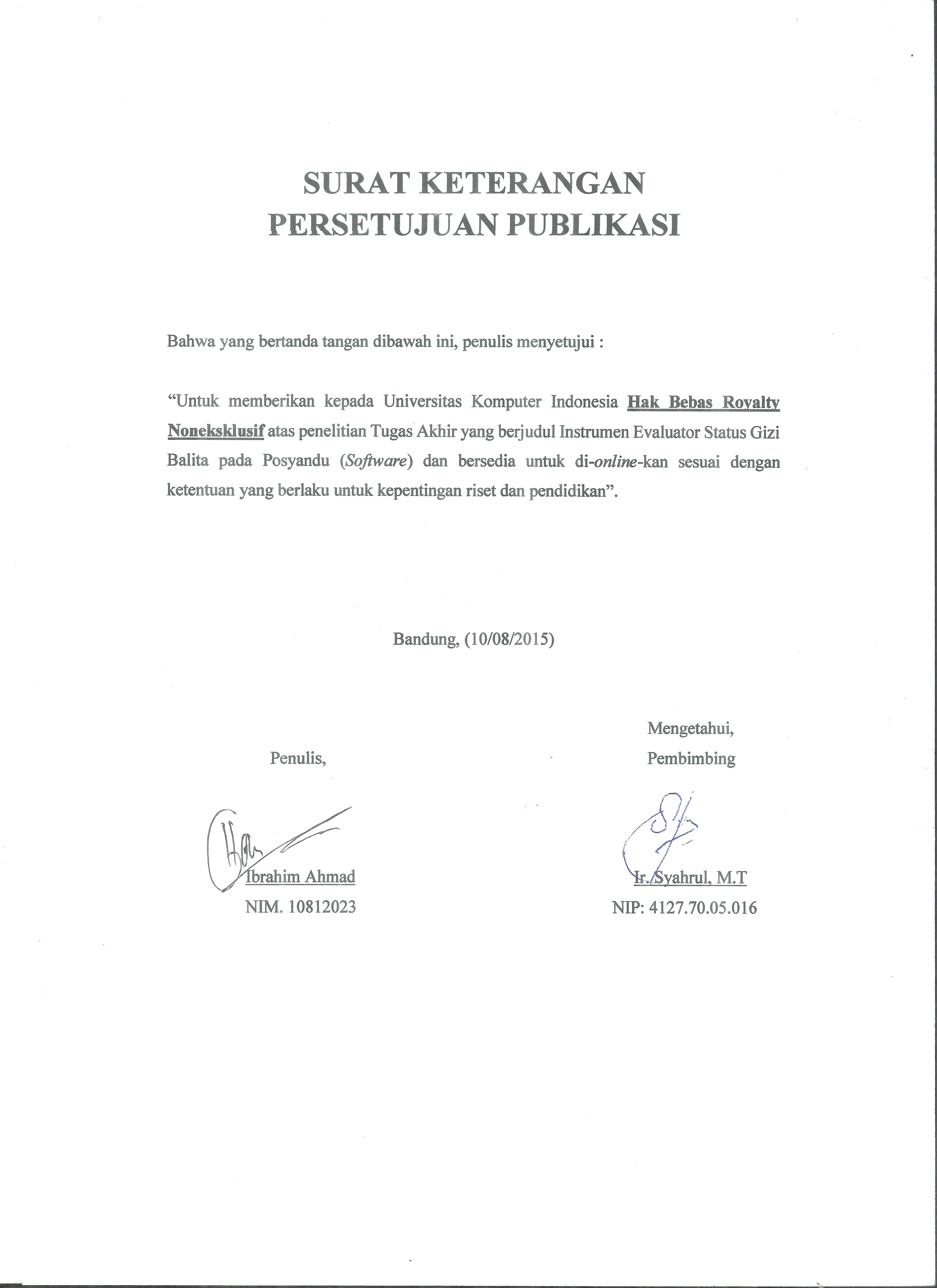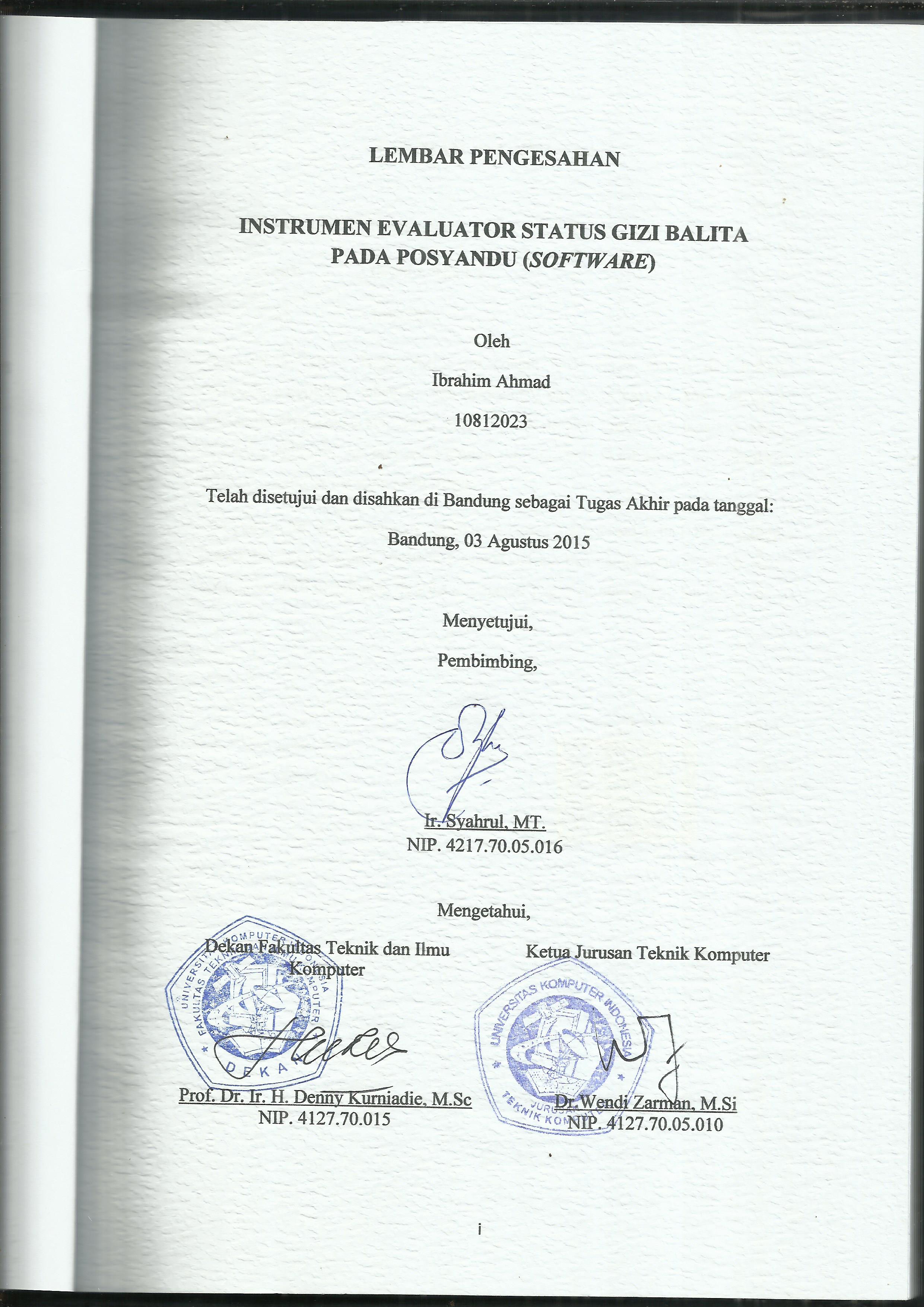 Ibrahim Ahmad NIM. 10812023 (2016) Instrumen Evaluator Status Gizi Balita Posyandu (Software).