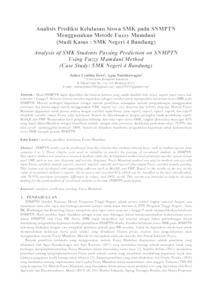 | Uncontrolled Keywords: | analisis, prediksi, kelulusan, Fuzzy Mamdani |