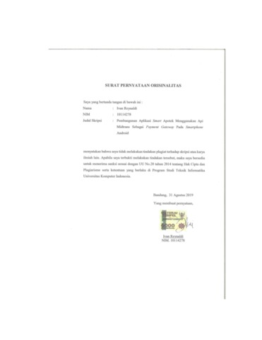 UNIKOM_IVAN REYNALDI_SURAT KETERANGAN ORISINALITAS.pdf - Published Version