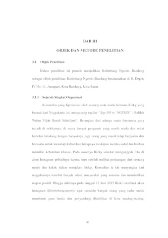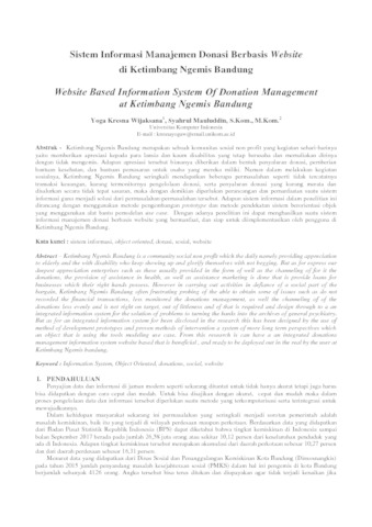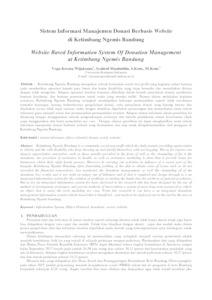 Ketimbang Ngemis Bandung merupakan sebuah komunitas sosial non profit yang kegiatan sehari-harinya yaitu memberikan apresiasi kepada para lansia dan kaum disabilitas yang tetap berusaha dan memuliakan dirinya dengan tidak mengemis. Adapun apresiasi tersebut biasanya diberikan dalam bentuk penyaluran donasi, pemberian bantuan kesehatan, dan bantuan pemasaran untuk usaha yang mereka miliki. Namun dalam melakukan kegiatan sosialnya, Ketimbang Ngemis Bandung seringkali mendapatkan beberapa permasalahan seperti tidak tercatatnya transaksi keuangan, kurang termonitornya pengelolaan donasi, serta penyaluran donasi yang kurang merata dan disalurkan secara tidak tepat sasaran, maka dengan demikian diperlukan perancangan dan pemanfaatan suatu sistem informasi guna menjadi solusi dari permasalahan-permasalahan tersebut. Adapun sistem informasi dalam penelitian ini dirancang dengan menggunakan metode pengembangan prototype dan metode pendekatan sistem berorientasi objek yang menggunakan alat bantu pemodelan use case. Dengan adanya penelitian ini dapat menghasilkan suatu sistem informasi manajemen donasi berbasis website yang bermanfaat, dan siap untuk diimplementasikan oleh pengguna di Ketimbang Ngemis Bandung.