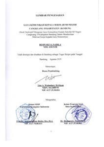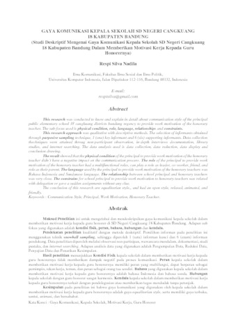 Nadila, Respi Silva (2019) Gaya Komunikasi Kepala Sekolah Sd Negeri Cangkuang 18 Kabupaten Bandung (Studi Deskriptif Mengenai Gaya Komunikasi Kepala Sekolah Sd Negeri Cangkuang 18 Kabupaten Bandung Dalam Memberikan Motivasi Kerja Kepada Guru Honorernya). Other thesis, Universitas Komputer Indonesia.