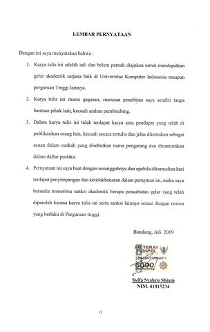 UNIKOM_41815234_SYIFA SYAHRU SHIAM LEMBAR PERNYATAAN.jpg - Published Version