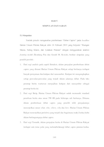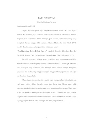 Penelitian ini bertujuan untuk mengetahui bagaimana pembingkaian berita debat capres yang menjadi (headline) Harian Umum Pikiran Rakyat Edisi 18 Februari 2019.