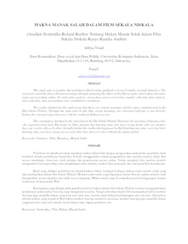 Triadi, Aditya (2019) Makna Manak Salah Dalam Film Sekala Niskala (Analisis Semiotika Roland Barthes Tentang Makna Manak Salah Dalam Film Sekala Niskala Karya Kamila Andini). Other thesis, Universitas Komputer Indonesia.