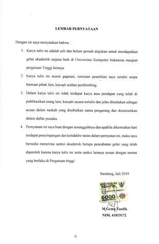 UNIKOM_MUHAMMAD GEMA TAUFIK_LEMBAR PERNYATAAN KEASLIAN.jpg - Published Version