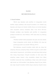 Penelitian ini menggunakan pendekatan kualitatif dengan metode etnografi komunikasi. Teknik pengumpulan data yang digunakan adalah wawancara mendalam, obersvasi non partisipan, studi pustaka, internet searching, dokumentasi. Informan pada penelitian ini berjumlah 4 (Empat) orang, dengan informan kunci 3 (Tiga) dan Informan pendukung 1 (satu) berdasarkan pada teknik Snowball. Teknik analisa data menggunakan deskripsi, analisis dan interpretasi.
