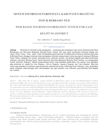 | Uncontrolled Keywords: | Kabupaten Belitung Timur, Sistem Informasi, Pariwisata, Web. |
