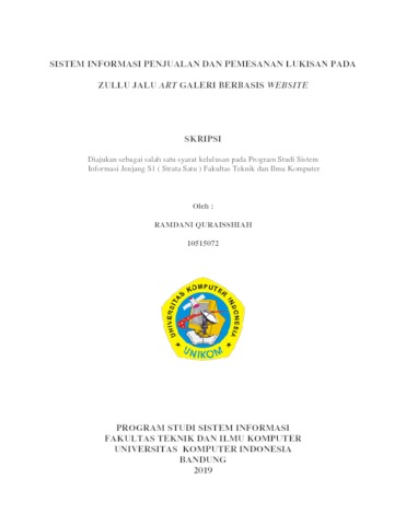 Quraisshihab, Ramdani (2019) Sistem Informasi Penjualan dan Pemesanan Lukisan Pada Zullu Jalu Art Galeri Berbasis Website. Other thesis, Universitas Komputer Indonesia.