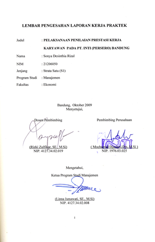 Sonya Desinthia Rizal NIM. 21206050 (2010) Pelaksanaan Penilaian Prestasi Kerja Karyawan Pada PT. Inti (Persero) Bandung.
