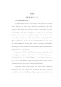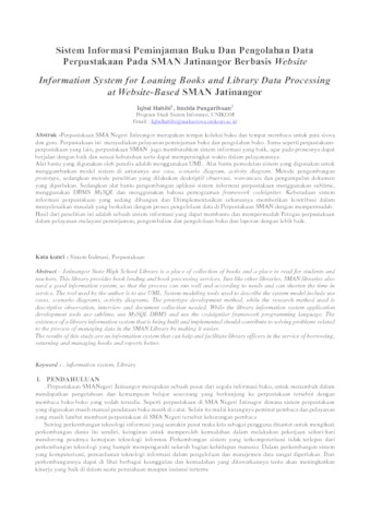 Perpustakaan SMA Negeri Jatinangor merupakan tempat koleksi buku dan tempat membaca untuk para siswa dan guru. Perpustakaan ini menyediakan pelayanan peminjaman buku dan pengolahan buku. Sama seperti perpustakaan-perpustakaan yang lain, perpustakaan SMAN juga membutuhkan sistem informasi yang baik, agar pada prosesnya dapat berjalan dengan baik dan sesuai kebutuhan serta dapat mempersingkat waktu dalam pelayanannya.
