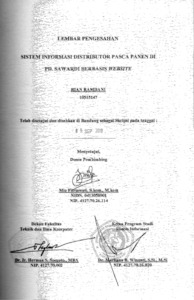 Uncontrolled Keywords: | Sistem Informasi, Distributor, Pasca panen, Website, PD.SAWARDI. |
