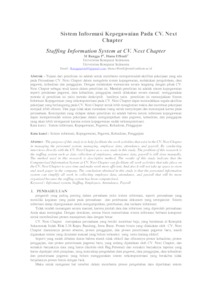 Tujuan dari penelitian ini adalah untuk membantu mempermudah aktifitas pekerjaan yang ada pada Perusahaan CV. Next Chapter dalam mengelola sistem kepegawaian, melakukan pengelolaan, data pegawai, kehadiran dan penggajian. Dengan melakukan wawancara secara langsung dengan pihak CV. Next Chapter sebagai studi kasus dalam penelitian ini. Masalah penelitian ini adalah sistem kepegawaian seperti pendataan pegawai, data kehadiran, penggajian masih dilakukan secara manual. menggunakan metode di penelitian ini yaitu metode deskriptift. hasilnya yaitu penelitian ini menunjukkan Sistem Informasi Kepegawaian yang terkomputerisasi pada CV. Next Chapter dapat memudahkan segala aktifitas pekerjaan yang berlangsung pada CV. Next Chapter untuk lebih menghemat waktu dan membuat pekerjaan menjadi lebih efesien. Dan juga tidak akan memakan ruang untuk menyimpan dan menumpuk kertas pada perusahaan. Kesimpulan yang didapat dalam penelitian ini adalah bahwa sistem informasi kepegawaian dapat mempermudah semua pekerjaan dalam mengumpulkan data pegawai, kehadiran, dan penggajian yang akan lebih terorganisir karena sistem kepegawaian sudah terkomputerisasi.