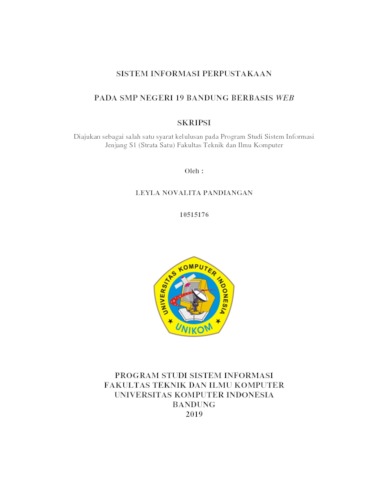 Pandiangan, Leyla N (2019) Sistem Informasi Perpustakaan Pada Smp Negeri 19 Bandung Berbasis Web. Other thesis, Universitas Komputer Indonesia.