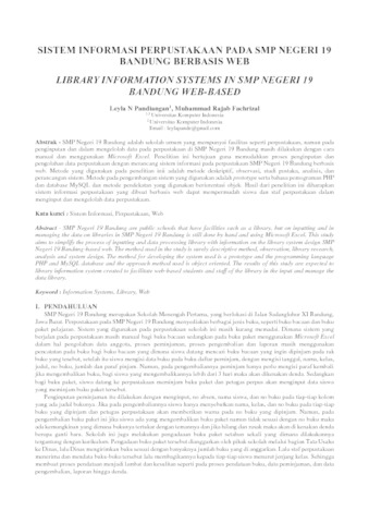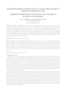 SMP Negeri 19 Bandung adalah sekolah umum yang mempunyai fasilitas seperti perpustakaan, namun pada penginputan dan dalam mengelolah data pada perpustakaan di SMP Negeri 19 Bandung masih dilakukan dengan cara manual dan menggunakan Microsoft Excel. Penelitian ini bertujuan guna memudahkan proses penginputan dan pengolahan data perpustakaan dengan merancang sistem informasi pada perpustakaan SMP Negeri 19 Bandung berbasis web. Metode yang digunakan pada penelitian inii adalah metode deskriptif, observasi, studi pustaka, analisis, dan perancangan sistem. Metode pada pengembangan sistem yang digunakan adalah prototype serta bahasa pemograman PHP dan database MySQL dan metode pendekatan yang digunakan beriorentasi objek. Hasil dari penelitian ini diharapkan sistem informasi perpustakaan yang dibuat berbasis web dapat mempermudah siswa dan staf perpustakaan dalam menginput dan mengelolah data perpustakaan.