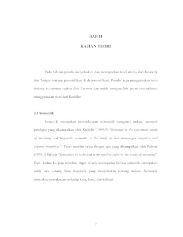| Uncontrolled Keywords: | Depersonifikasi, Komponen Makna, Peran Semantik, Personifikasi |
