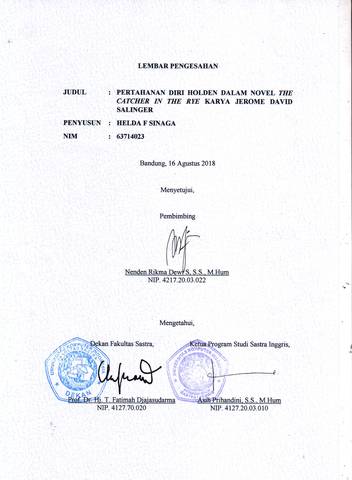 Sinaga, Helda Friska (2018) Pertahanan Diri Holden Dalam Novel The Catcher In The Rye Karya Jerome David Salinger. Other thesis, Universitas Komputer Indonesia.
