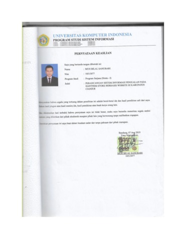 UNIKOM_Muh Bilal Sanubari_PERNYATAAN KEASLIAN.pdf - Published Version